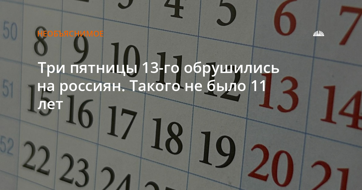 Третья такая пятница ожидается в ноябре. По данным издания, две пятницы 13-го фиксировали в 2017–2020 годах и в 2023–2024-м.