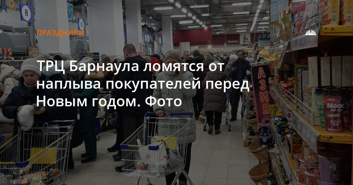 В ТРЦ «Пионер» огромные толпы людей заполонили гипермаркет «Лента». Барнаульцы закупаются продуктами для праздничного стола и напитками. В магазине работает 17 касс и всего одна — для самообслуживания. У каждой из них в ряд выстроились длинные очереди.