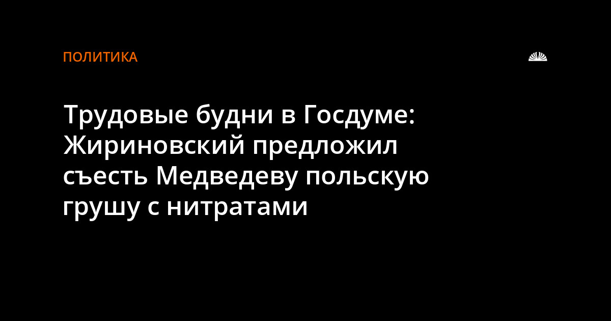 После выступления премьера к нему обратился лидер партии ЛДПР Владимир Жириновский. Парламентарий показал премьеру грушу, привезенную из Польши и содержащую, по его данным, предельно допустимую концентрацию нитратов, и предложил Медведеву съесть ее. Премьер употреблять фрукт отказался.