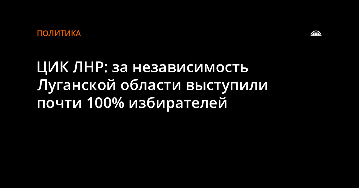 "На сегодняшнее утро обработаны данные 28 территориальных комиссий. Ожидаем данные из территориальных комиссий из сложных районов, там, где ребята попадают под воздействие Национальной гвардии, по промежуточным данным, за государственную самостоятельность "Луганской народной республики" проголосовали 94-98% избирателей", — сказал он.