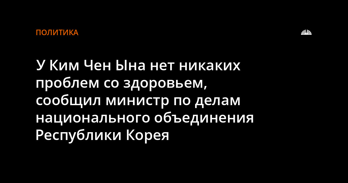 У верховного лидера КНДР Ким Чен Ына нет проблем со здоровьем. Об этом сообщило южнокорейское агентство Ренхап со ссылкой на министра по делам национального объединения Республики Корея Рю Гиль Чжэ.