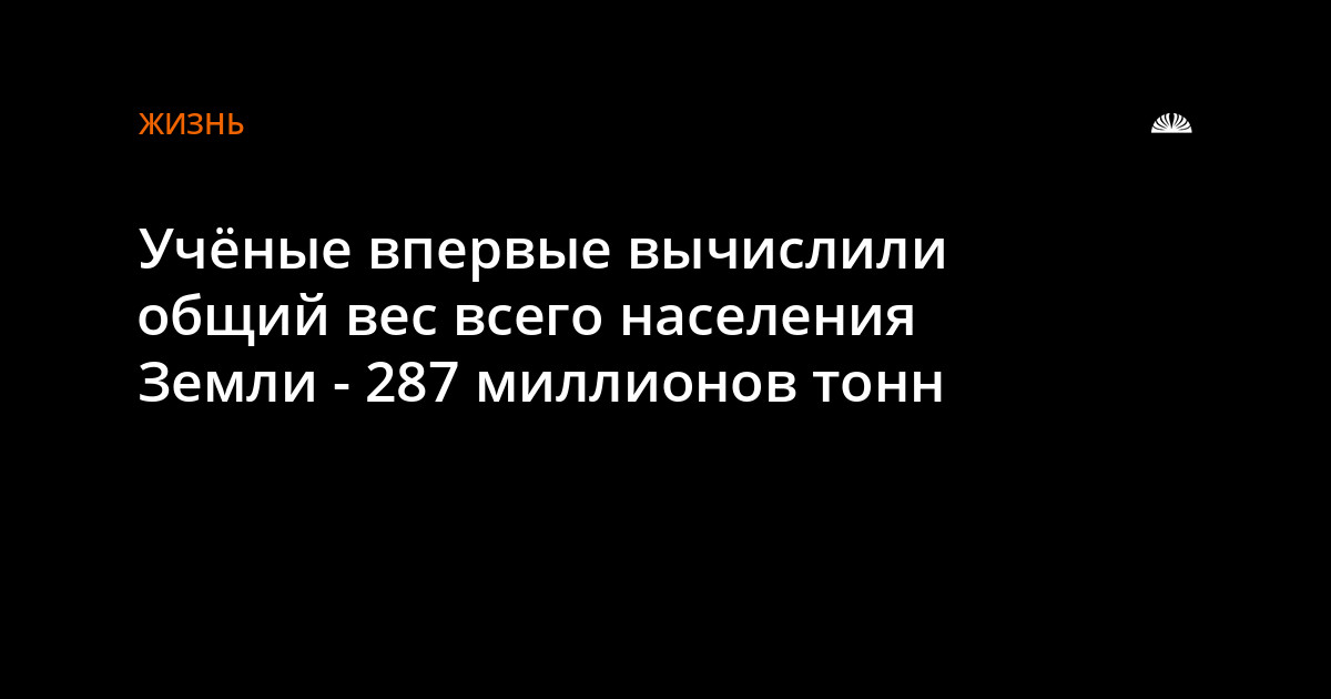 Исследователи впервые вычислили общий вес населения Земли, который, по их словам, составляет 287 миллионов тонн. Средний взрослый человек весит 62 кг, причем в США этот показатель выше на треть.