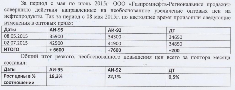 Все понимают, что рост цены на топливо неизбежен, но что он будет столь стремителен, мало кто мог ожидать. На бирже за неполные два месяца поставщики подняли цену за тонну топлива почти на 7 тыс. рублей. Обоснованность такого роста вызывает сомнение. Мы хотим, чтобы ФАС ограничила аппетиты нефтяных компаний. Так как в Алтайском крае основной поставщик топлива - "Газпромнефть", наши вопросы адресованы именно ему.
