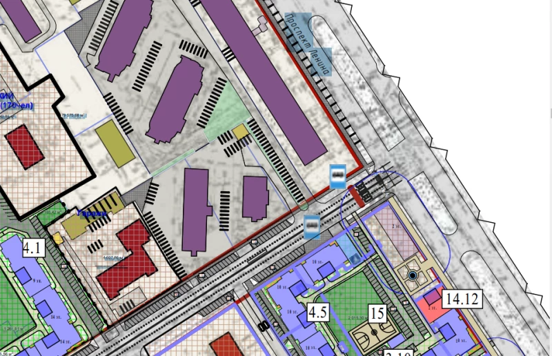 Также в проекте планировки можно увидеть, где «Союз» предлагает разместить новые многоквартирные дома — их отметили светло-сиреневым цветом.