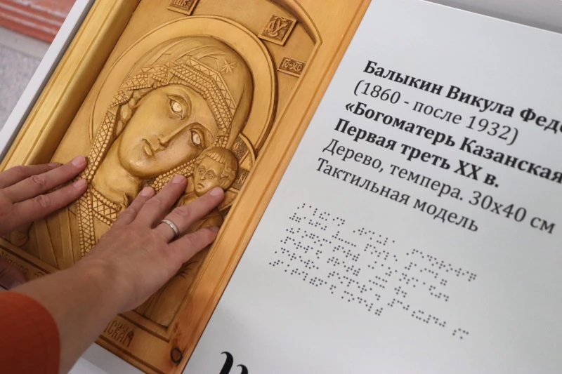 До 10 января 2027 года здесь можно не только смотреть на произведения отечественного и православного искусства XIX–XX веков, но и буквально прикасаться к ним через специально созданные тактильные копии.