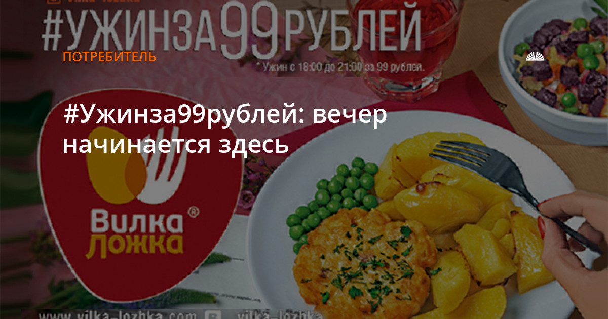 Поужинать по дороге с работы в театр, кино или на шоппинг стало совсем просто, это займет у вас не более двадцати минут. Можно даже успеть отметиться #ужинза99рублей в Instagram, чтобы скоординировать свои дальнейшие передвижения с друзьями и знакомыми. И если в какой-нибудь кофейне или другом ресторане за 99 рублей вы получите лишь чашку кофе или в лучшем случае салат, то в ресторанах "Вилка-Ложка" за эту цену вам предложат полноценный ужин из двух блюд и напитка. Быстро, вкусно и недорого.