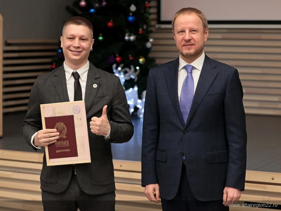 28 декабря в Алтайском филиале РАНХиГС состоялась торжественная церемония вручения дипломов о профессиональной переподготовке выпускникам Губернаторской программы подготовки профессиональных кадров для сферы малого и среднего предпринимательства.