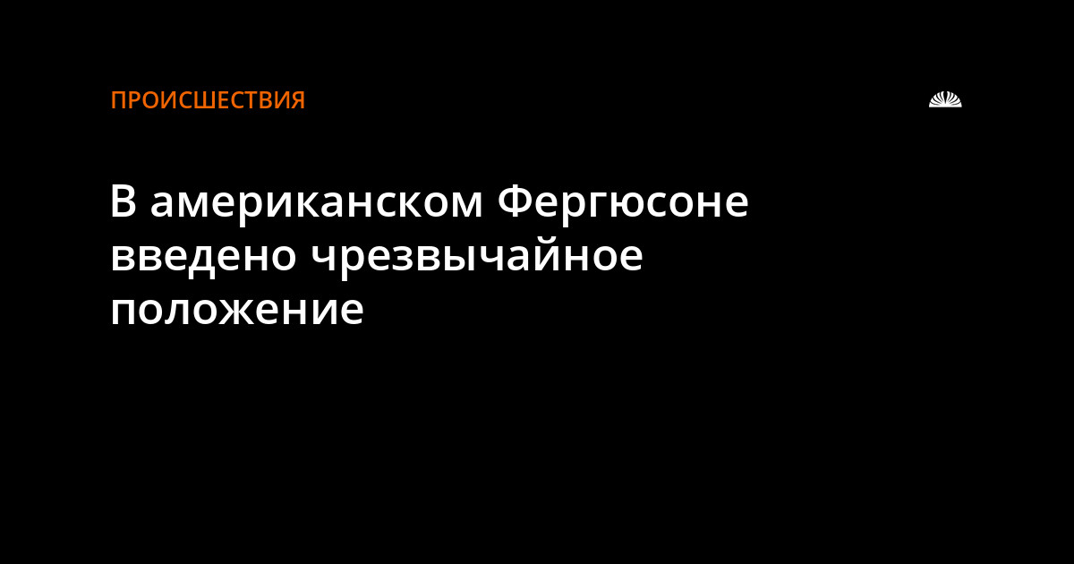 В Фергюсоне введено чрезвычайное положение и комендантский час. Решение губернатора Миссури направлено на то, чтобы остановить волну ожесточённых протестов, захлестнувших город после убийства полицейским чернокожего подростока, передаёт "РИА Новости".