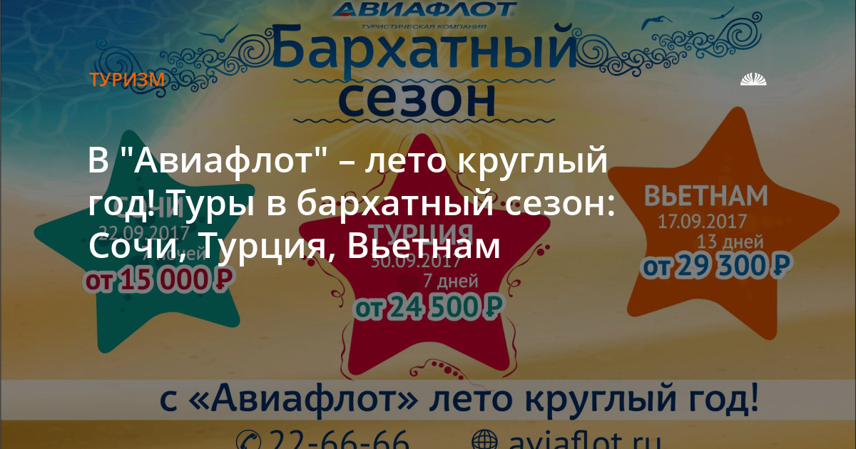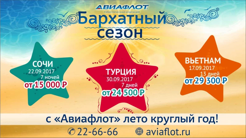 Подборка специальных предложений туров в бархатный сезон от компании "Авиафлот":