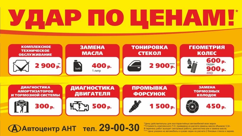 Пришло время, когда вы можете обслуживать свой автомобиль на высоком уровне и по приемлемым ценам. Не откладывайте и запишитесь на сервис в Автоцентре АНТ прямо сейчас: 29-00-30