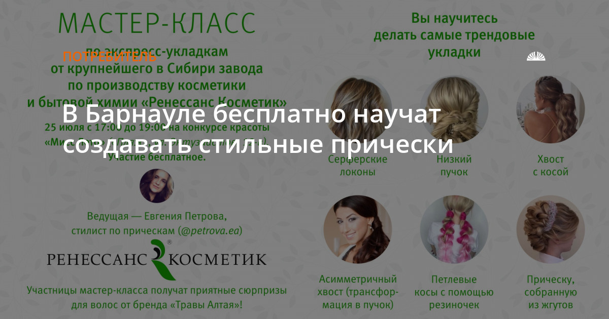 Проведет мастер-класс Евгения Петрова — стилист по прическам. Она расскажет, как быстро создать непринужденный образ с сёрферскими локонами или петлевыми косами, а также как добавить женственности в свой образ, создав у себя на голове асимметричный хвост, низкий пучок или прическу, собранную их жгутов. Если вы не знаете, что делать со своими непослушными волосами, то этот урок для вас!