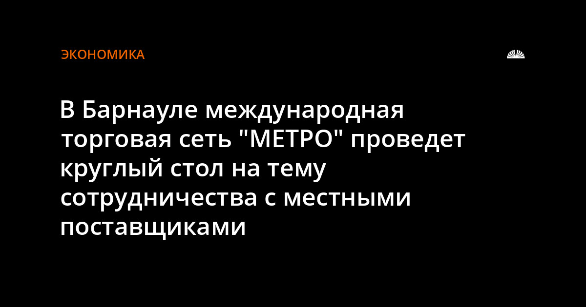 Инициатором встречи выступила компания "МЕТРО Кэш энд Керри", которая инвестирует в создание торгового комплекса в Барнауле более 18 миллионов евро. Перед началом круглого стола - с 10.00 до 10.20 - пройдет брифинг. Об этом сообщает пресс-служба администрации Алтайского края.
