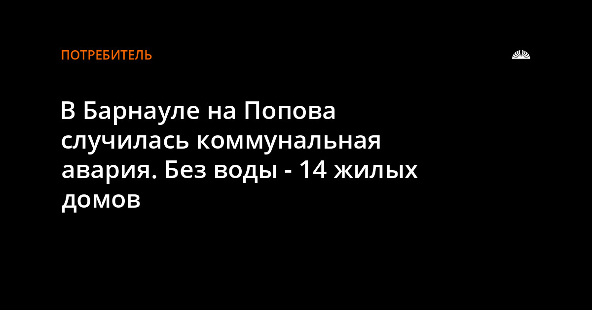 Вечером 3 августа на улице Попова в районе дома №53 на поверхность вышла вода из коммунальных сетей. Как сообщает пресс-служба барнаульского водоканала, в результате неосмотрительных действий фирмы "Сибирьэнергопроект" оказался разрушенным чугунный водопровод диаметром 400 мм. Аварийная бригада водоканала установила, что фирма, проводившая работы на данном участке, была ознакомлена со схемами прохождения трубопроводов и совершила ошибку просто из неосторожности. В результате такой неосмотрительности 14 девятиэтажных домов остались без холодной воды – а часть и без горячей, так как под отключение попали и две бойлерных. разрушенной оказалась Специалистам барнаульского водоканала пришлось заменить три метра полностью разрушенного водопровода. К 6 утра 4 августа вода в домах барнацльев снова появилась. Подрядная организация будет возмещать ущерб, причиненный Водоканалу.
