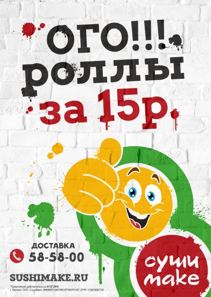 В суши-буфетах "Суши Make" всегда можно купить свои любимые свежие роллы в любом количестве, начиная от одного кусочка. А если учесть низкую цену продукции, с уверенностью можно сказать, что вы точно не останетесь голодными. Тем более сейчас в сети действует акция "Роллы от 15 рублей".