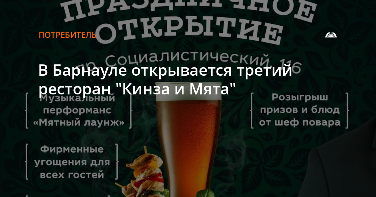 В честь открытия ресторана будет устроен светский раут – гости смогут пройтись по красной дорожке, поэтому в "Кинзе и мяте" будет строгий дресс-код. В вестибюле ресторана будет оборудована welcome-зона, на которой будет размещён фуршетный стол с закусками и напитками. А ещё гости смогут получить снимки от фотографа портала Nightout.