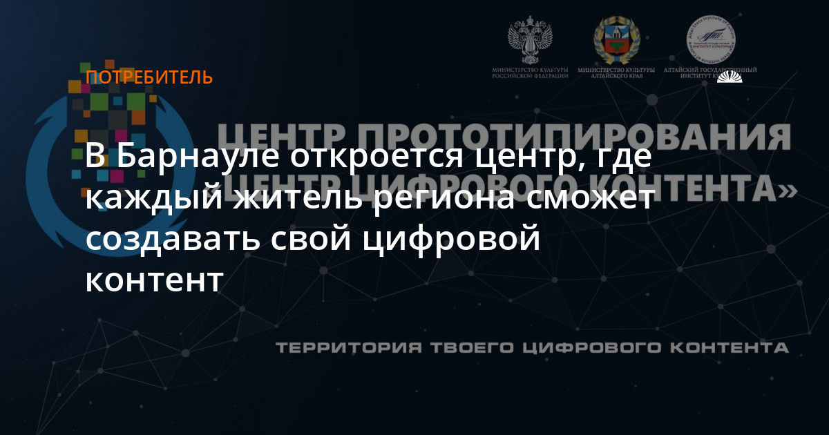 Центр прототипирования «Центр цифрового контента» создан в Алтайском государственном институте культуры в рамках реализации федерального проекта Правительства Российской Федерации под руководством Министерства культуры Российской Федерации.