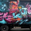 В течение четырёх дней 7 граффитчиков – Akue (Омск), Morik (Новосибирск), Zak (Красноярск), Alex214 (Омск), Goa (Барнаул), Max 13 (Иваново) и Aber (Барнаул) - создавали совместную работу на бортах двух тяжелых грузовиков компании "Транс-Экспресс".
