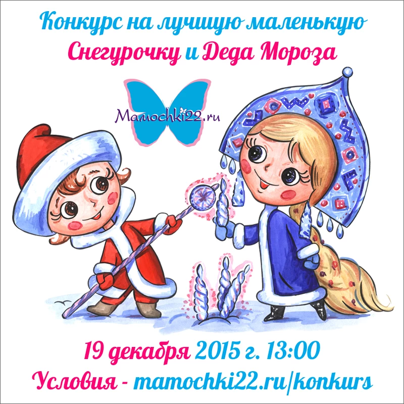 - 19 декабря 2015 г. с 13.00 до 14.00 состоится финал конкурса на звание лучшей маленькой Снегурочки и маленького Деда Мороза для детей от 0 до 12 лет. Первым отборочным туром в состязании станет фотоконкурс "Новогодние украшения". Приглашаем к участию!