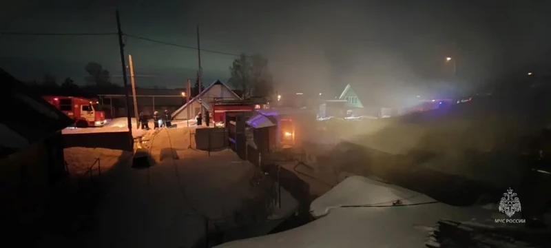 Пламя удалось локализовать на площади около 60 квадратов. Огонь охватил сарай, баню и частично дом на одном участке, а также кровлю и стены жилища на втором участке.