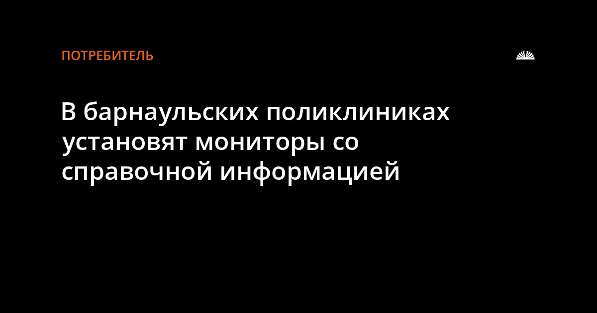 Информационные LCD-телевизоры будут установленые в ближайшее время в нескольких лечебных учреждениях Барнаула. Как сообщает пресс-центр городской администрации, рядом с регистратурами будут оборудованы экраны со справочной информацией о работе лечебного учреждения.