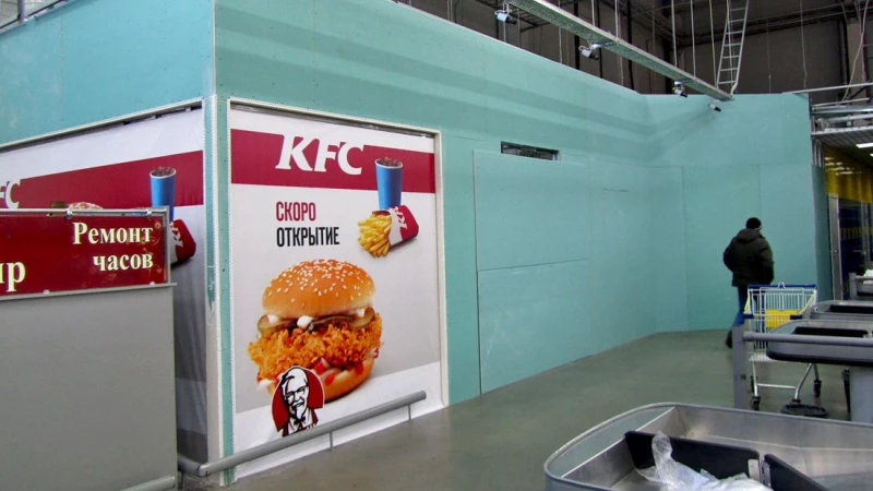 Сейчас в торговом центре "Лента" огорожена площадь, где в ближайшем будущем откроют KFC. Раньше на этом месте располагался небольшой кафетерий.