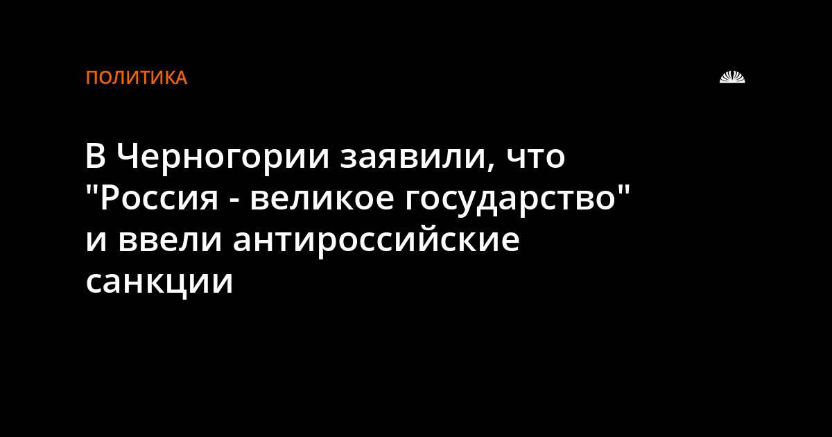 Он также отметил, что Черногория "никоим образом не выражает антироссийское настроение", а "просто следует своим интересам", подчеркнув, что "Россия – великое государство", пишет "Газета.ру".