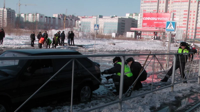 Проезжую часть, попавшая под потоп, обработали антигололедной смесью. На остальных участках работают коммунальные службы.