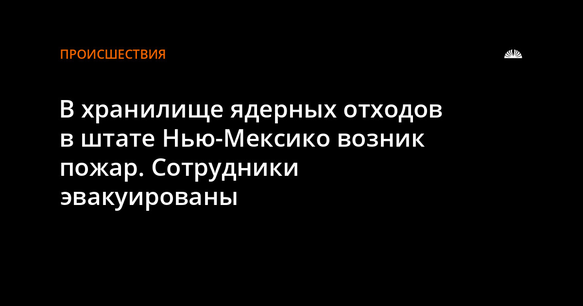 В подземном хранилище ядерных отходов, расположенном в штате Нью-Мексико, в среду, 5 февраля, произошел пожар, сообщает Agence France-Presse со ссылкой на заявлением министерства энергетики США.
