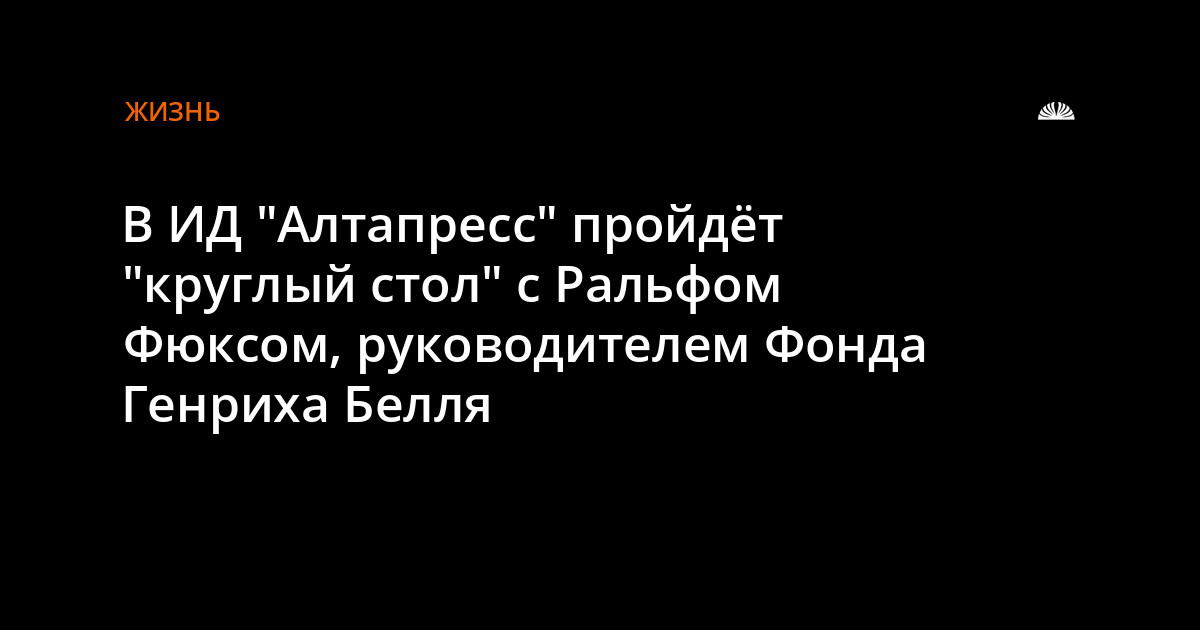 9 июня в Барнауле в конференц-зале "Алтапресса" пройдет "круглый стол" с Ральфом Фюксом, руководителем Фонда Генриха Белля. Темы: "Экономическое развитие в период глобального изменения климата", "Перспективы взаимоотношений между Россией и Евросоюзом" и пр. Начало в 14.00, подробности: 8-903-990-8572.