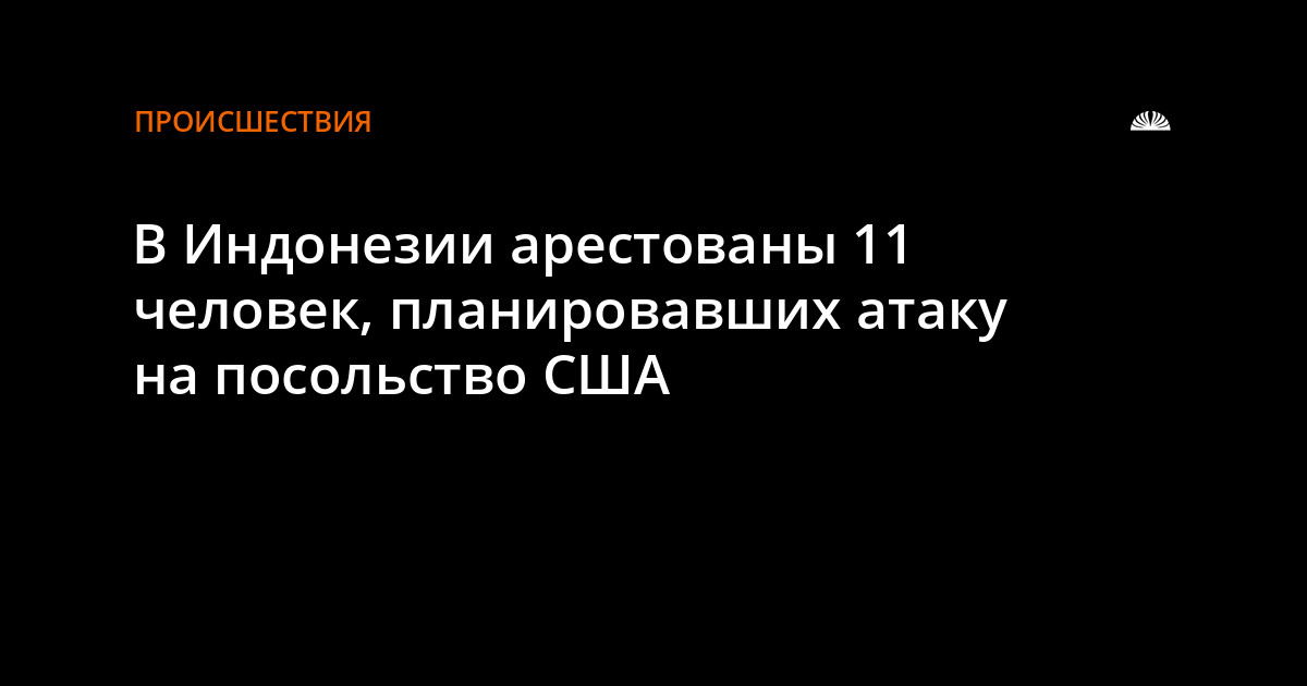 В Индонезии сотрудники полиции арестовали одиннадцать подозреваемых в подготовке взрывов зданий американской дипмиссии. Как сообщает NBC, террористы из группы под названием "Хасми" намеревались взорвать здания посольств США и Австралии в Джакарте, а также здание генконсульства США в Сурабае.