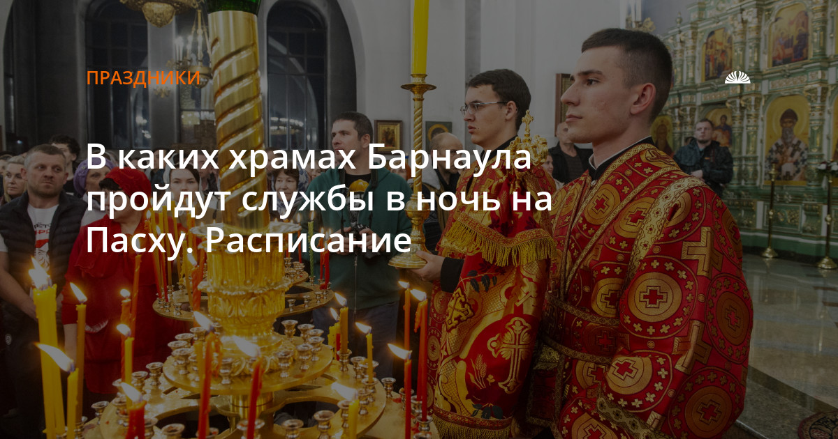 - 00:00 — Крестный ход. Пасхальная утреня и ночная праздничная Божественная литургия.