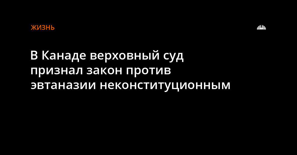 Верховный суд канадской провинции Британская Колумбия признал, что закон, запрещающий врачам умерщвлять смертельно больных людей по их просьбе, противоречит Конституции, сообщает "Би-би-си".