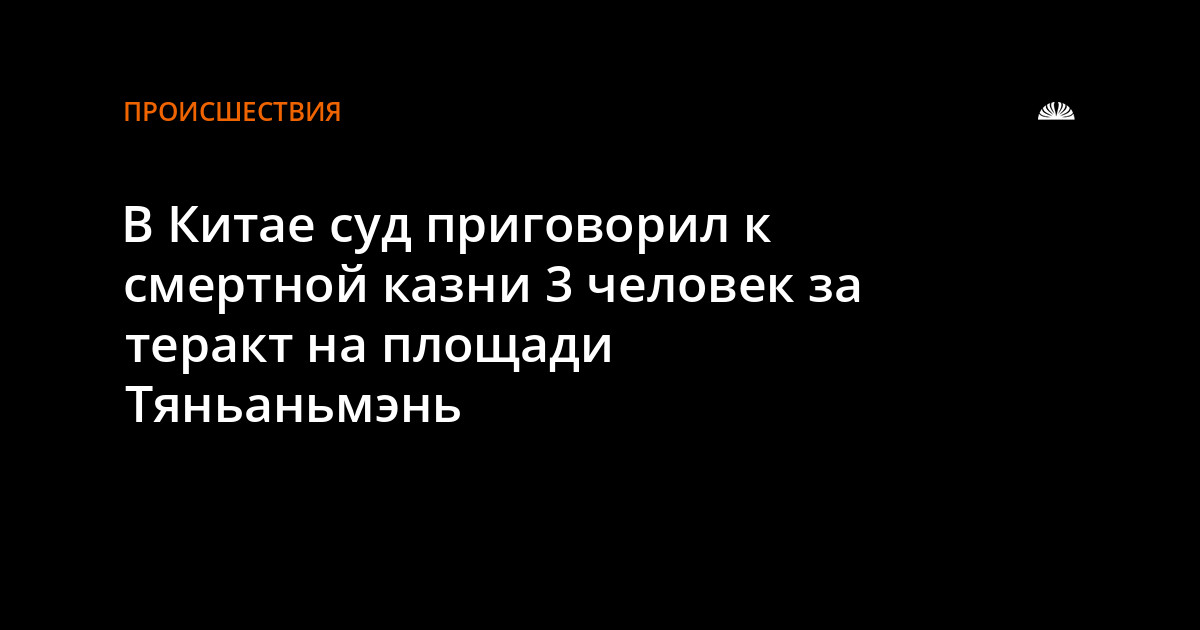 Суд в Китае приговорил к смертной казни трех человек, признанных виновными в совершении теракта на площади Тяньаньмэнь в Пекине в октябре прошлого года, передает Reuters со ссылкой на государственное китайское телевидение.