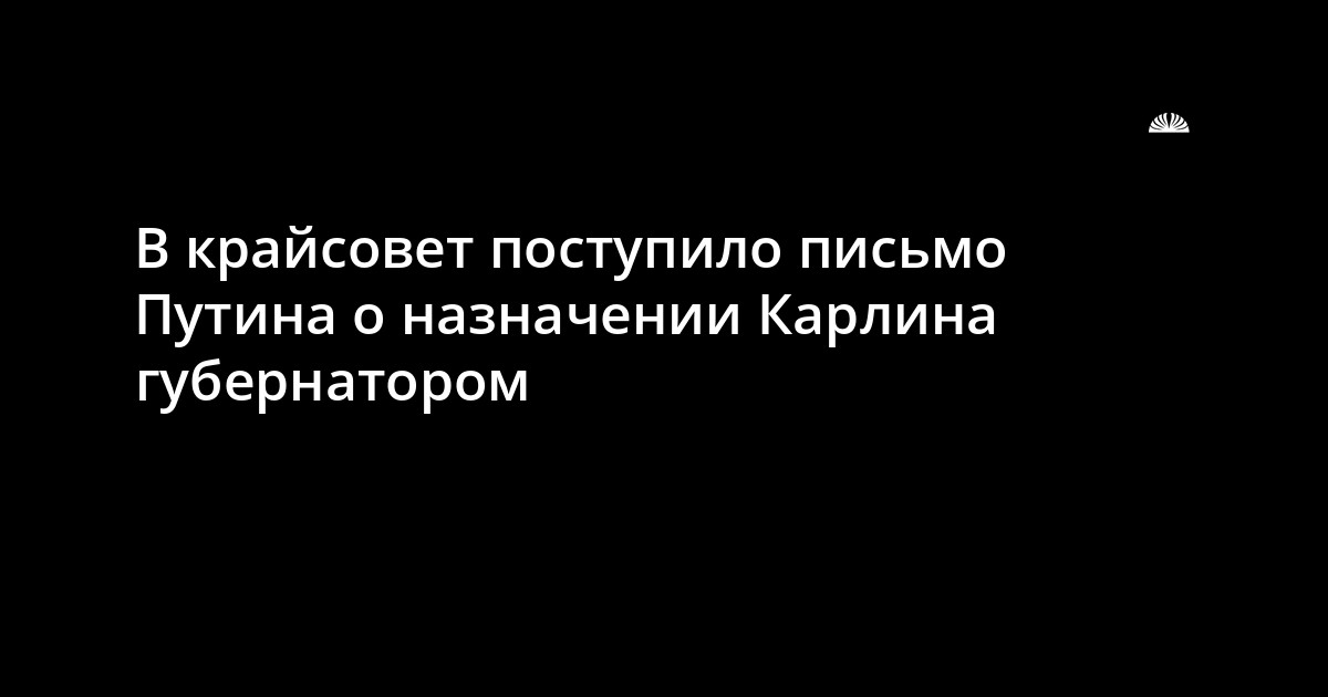 Письмо президента России Владимира Путина о внесении на рассмотрение Алтайского краевого Совета народных депутатов кандидатуры Александра Карлина для наделения его полномочиями главы администрации Алтайского края поступило в крайсовет рано утром 19 августа. Об этом корреспонденту «СК» сообщил зампред крайсовета Борис Ларин.