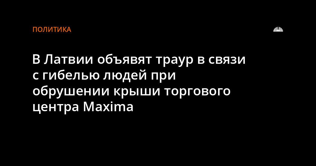 Президент Латвии Андрис Берзиньш объявил, что в стране в связи с гибелью людей при обрушении крыши торгового центра Maxima будет объявлен траур, сообщает РИА Новости.