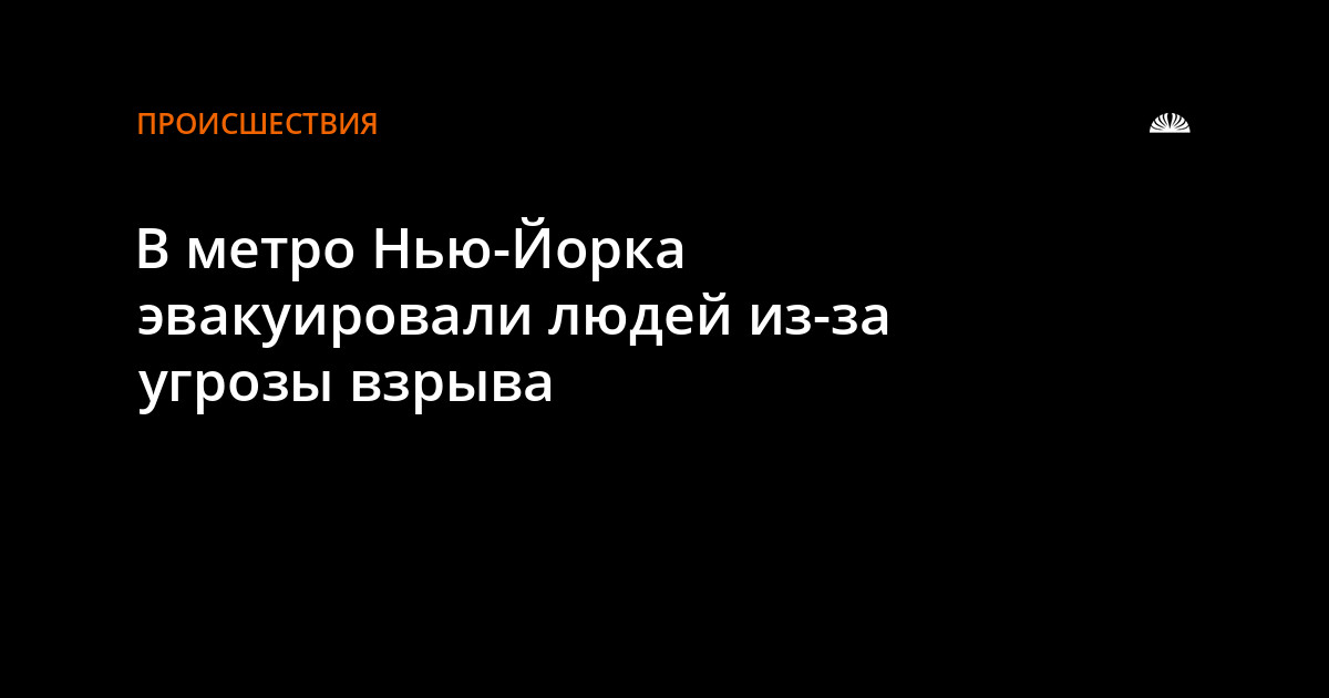 В метро Нью-Йорка провели срочную эвакуацию людей. Саперы не обнаружили опасных предметов в подозрительном свертке, оставленном на станции метро в центре Нью-Йорка. Пакет был найден на станции "Таймс-сквер — 42-я улица" 21 октября около 13.30 по местному времени (21.30 мск). Полиция предполагала, что в нем может находиться ручная граната. Была проведена эвакуация людей, поезда метро более часа проезжали эту станцию без остановки.