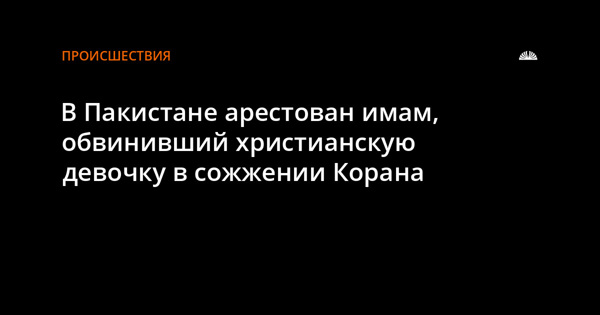 В Пакистане арестован имам, обвинивший христианскую девочку в сожжении Корана: несколько свидетелей заявили о том, что видели, как имам Халид Чишти подложил ей в мешок с мусором обгоревшие листы Корана, сообщает Khaama.com.