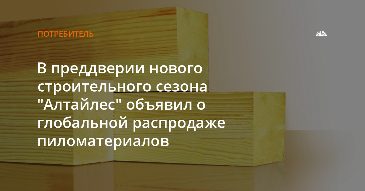 Только до 1 мая лесная холдинговая компания "Алтайлес" реализует пиломатериалы по сниженным ценам — от 800 рублей/м3. Приобрести необходимую продукцию можно в двенадцати обозначенных предприятиях, расположенных в Алтайском крае.