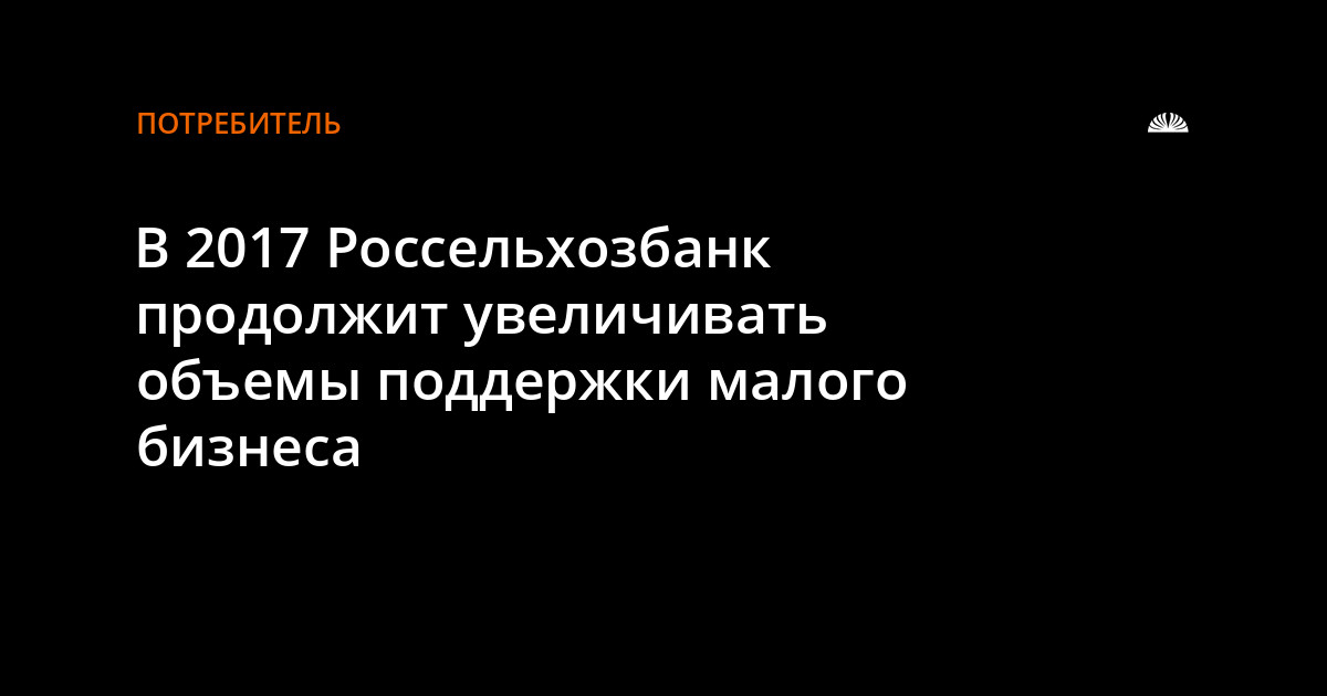 АО "Россельхозбанк" проводит целенаправленную работу по повышению доступности кредитных ресурсов и созданию условий для развития малого бизнеса, уделяя особое внимание агропромышленному сектору. В 2016 году Банк неоднократно пересматривал в сторону понижения процентные ставки для предприятий АПК, существенно упростил процедуру предоставления кредитов, в том числе на проведение сезонных работ. В 2016 году на поддержку малых форм хозяйствования Россельхозбанк направил 26,5 млрд рублей, что на 7,5% превышает показатель 2015 года.