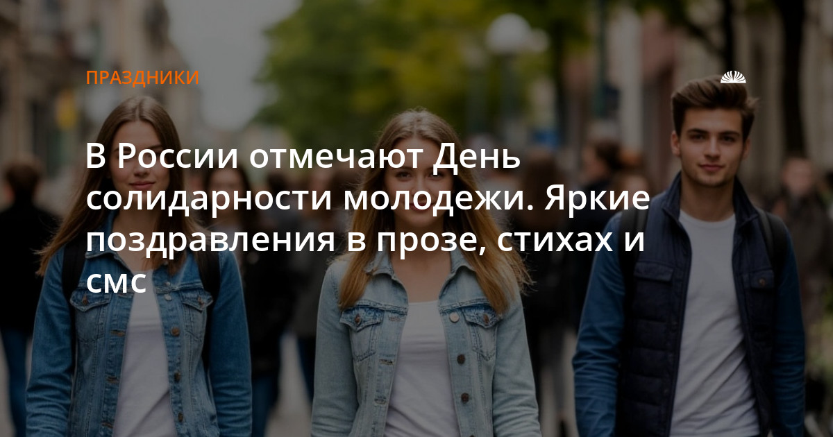 Поздравляю с днем солидарности молодежи! У нас, только-только вставших на крыло, покинувших весну детства, горит сердце и нам хочется летать! Желаю тебе верить в свои силы и прикладывать их к нужным делам, чтобы быть по-настоящему счастливым человеком, у которого родина — вся Земля!