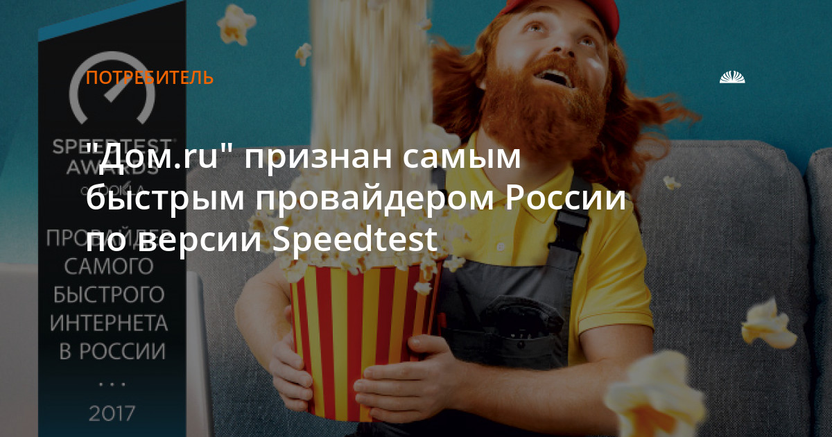 Благодаря миллионам тестов, которые проводятся каждый день с использованием Speedtest, Ookla разработала надежный и всесторонний подход к оценке характеристик интернета в мировом масштабе. Мы рады признать "Дом.ru" самой быстрым провайдером ШПД в России на основании тщательного анализа. Эта награда свидетельствует об исключительных результатах работы "Дом.ru", которые ее клиенты чувствовали на собственном опыте в 2017 году.