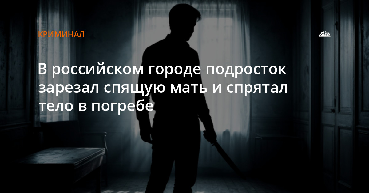 Подросток нанес несколько ударов ножом 51-летней матери, когда та спала. От полученных ранений женщина скончалась. Тело убийца спрятал в погребе, а сам попытался скрыться. Позже его задержали.