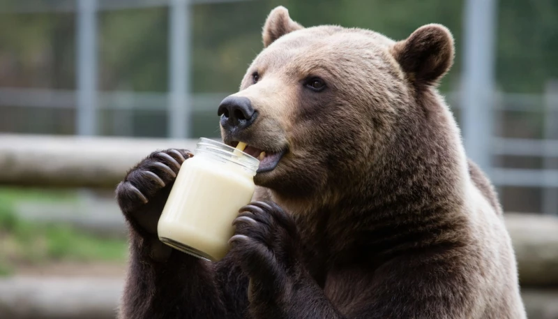Посетители, решившие угостить косолапого сладостью, залезли на территорию и оставили банку сгущенки. Медведь съел содержимое, и его организм не справился — животному стало плохо.