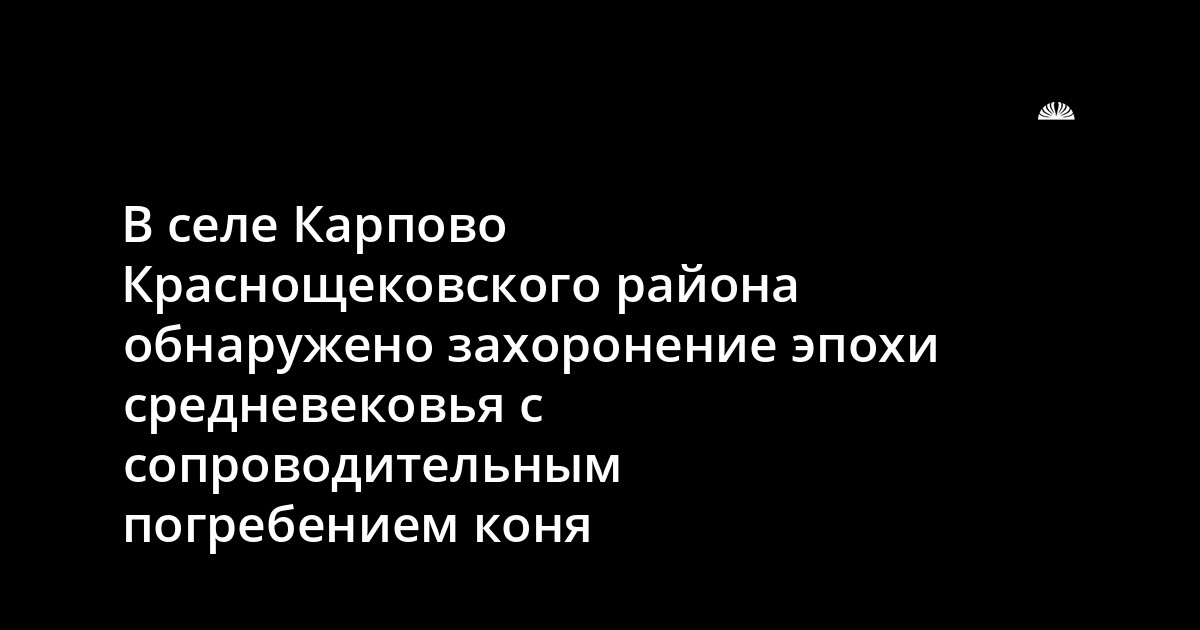Курган, в насыпи которого найдено захоронение человека в сопровожении лошади, обнаружен в селе Карпово Краснощековского района. Оно было найдено во время аварийных работ, которые проводило НПЦ “Наследие” и Управление Алтайского края по культуре с 16 по 19 июля, на месте разрушенного памятника археологии.
