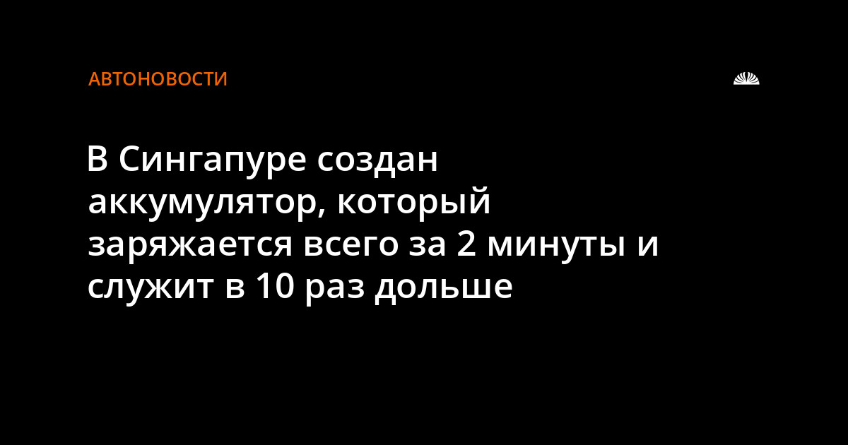 Ученые из Сингапура создали батарею, которая может заряжаться на 70% от полной своей емкости всего за 2 минуты. Мало того, разряжается батарея в 10 раз медленнее, чем существующие батареи.