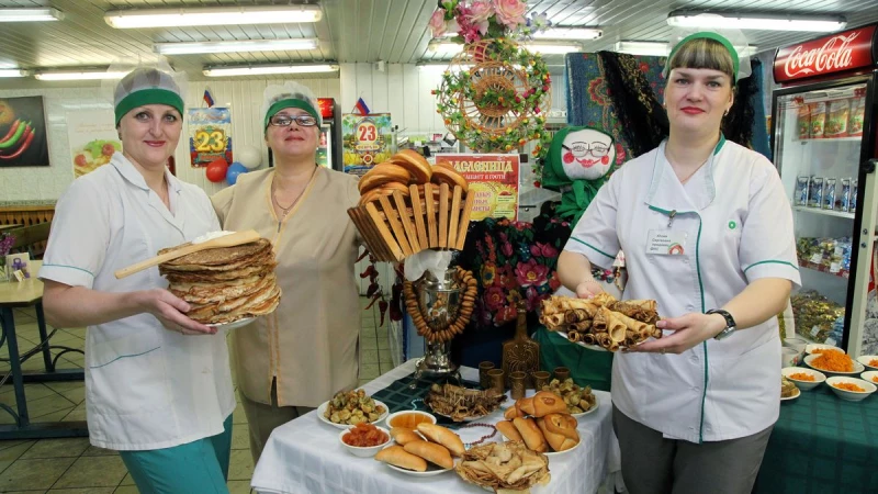 Обеденные залы украсили тематическими плакатами. В столовой коксового цеха нарядили "госпожу Масленицу", создали уголок с предметами русского быта. Меню всех столовых предприятия в эти дни соответствовало традициям: ежедневно предлагали блинчики со сметаной, маслом, сгущенным молоком, а также с разными начинками – творогом, вишней, курицей и грибами. Щедрый дегустационный стол дополняли аппетитные кулебяки, расстегаи, плюшки, баранки и чай в старинном самоваре.