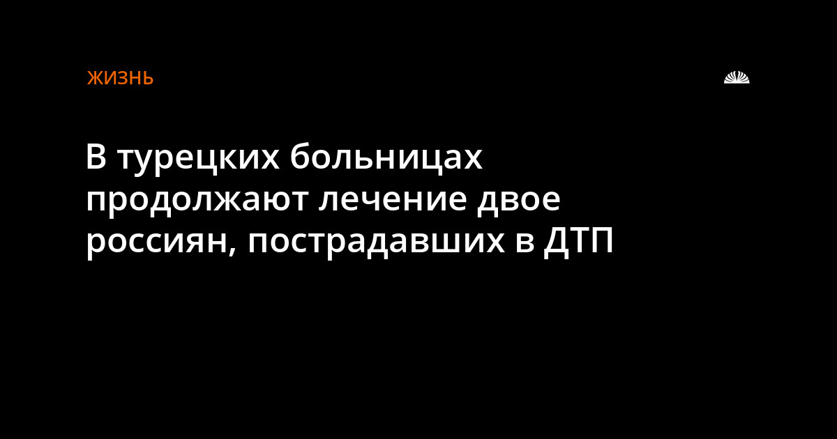 По сообщению Генерального Консульства в Анталье (Турция), по состоянию на 12.00 30 августа в больницах продолжают оставаться под наблюдением врачей двое россиян, пострадавших накануне в ДТП, - женщина с переломом левой ключицы и мужчина с ушибом головы.