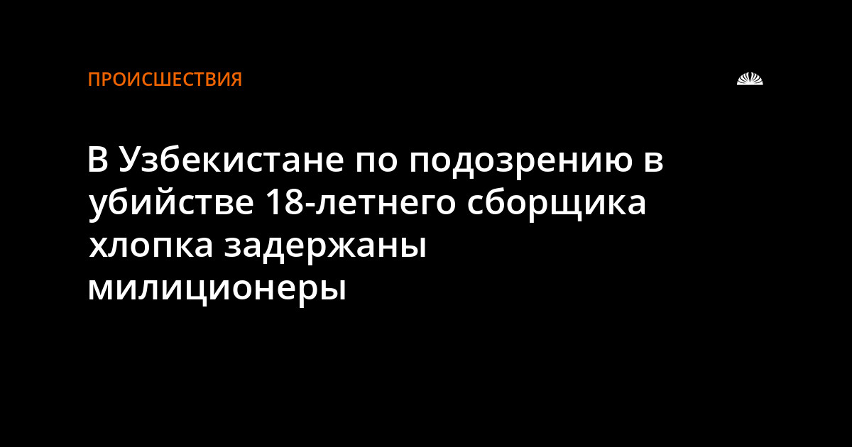 В городе Шахрисабзе Кашкадарьинской области, что на юге Узбекистана, два милиционера подозреваются в убийстве 18-летнего сборщика хлопка, они задержаны, сообщает Озодлик (узбекская служба Радио Свобода).
