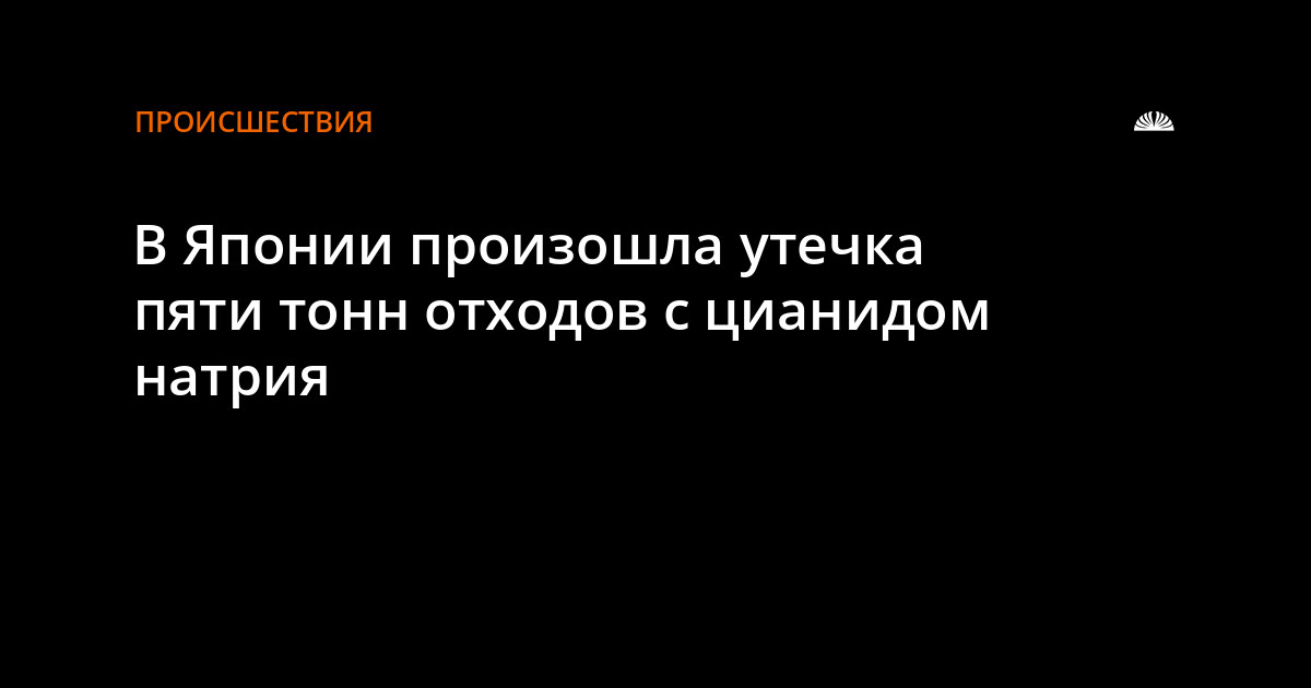 На одном из предприятий на севере Японии произошла утечка пяти тонн жидких отходов, содержащих цианид натрия, сообщает Лента.ру со ссылкой на зарубежные СМИ.