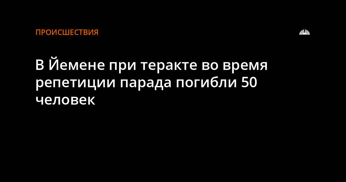 21 мая в столице Йемена г.Сане во время репетиции военного парада взорвался террорист-смертник. Жертвами взрыва стали не менее 50 человек, число пострадавших пока не уточняется, передает арабский спутниковый телеканал Al Arabia.